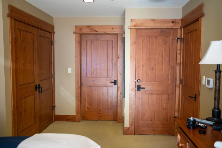 The wooden doors do a lot to give the room a rustic cabin feel, even though it is inside a resort.