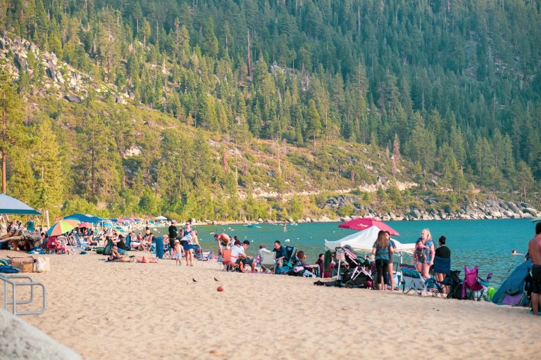 Everyone was eager to get a spot as close to the water as possible. Given that Lake Tahoe is a lake, there aren’t any major waves so it’s much easier to plant yourself close to the water.